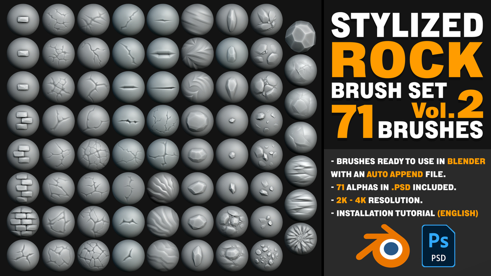 Stylized Rock Brush Set Vol 2 - Ready For Blender - 71 Brushes